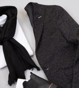 کت مشکی.شال.ژاکت یقه اسکی.شلوار.چکمه